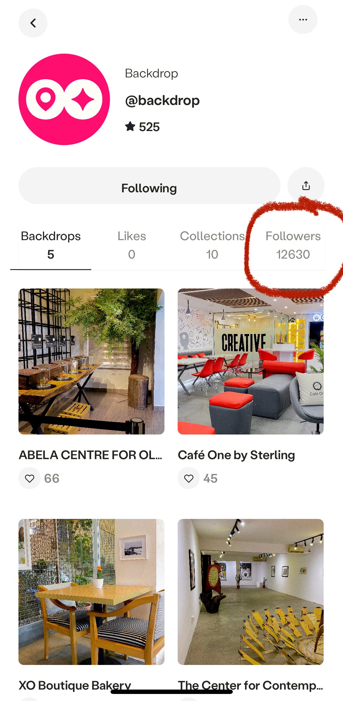 Hint: Every Backdrop user follows the backdrop official account on the app. Currently the user base stands at 12600 users.